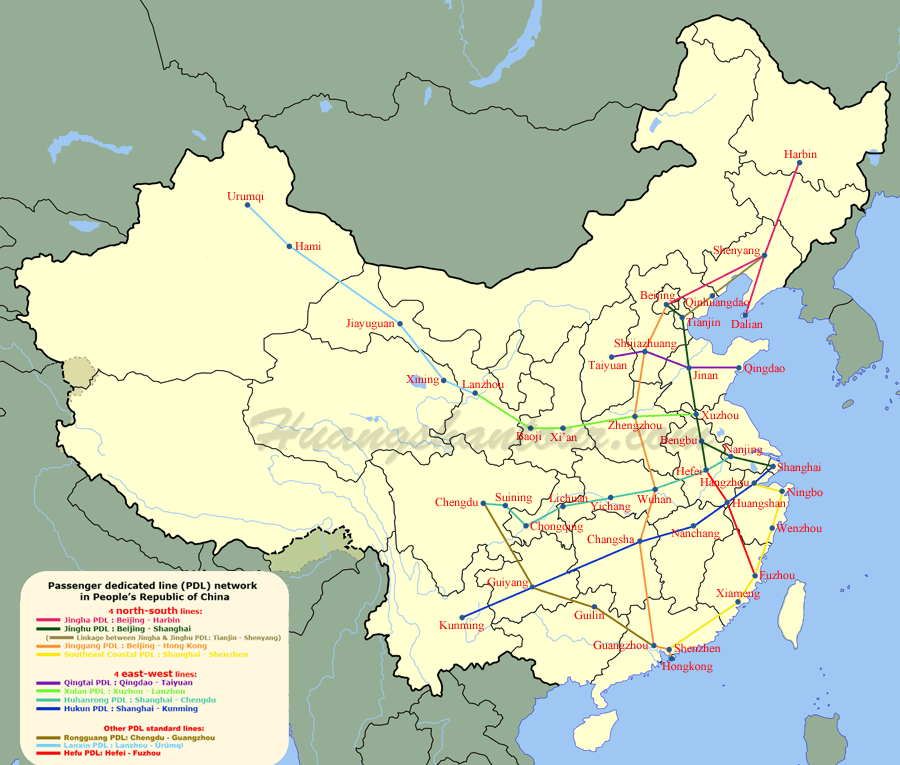 Kínában a vasút egy rendkívül fontos közlekedési és szállítási mód, a személyforgalom két harmada, és a teherforgalom fele is ezen bonyolódik. A nagysebességű vonalak hossza 2020-ig el fogja érni a 16.000 kilométert.